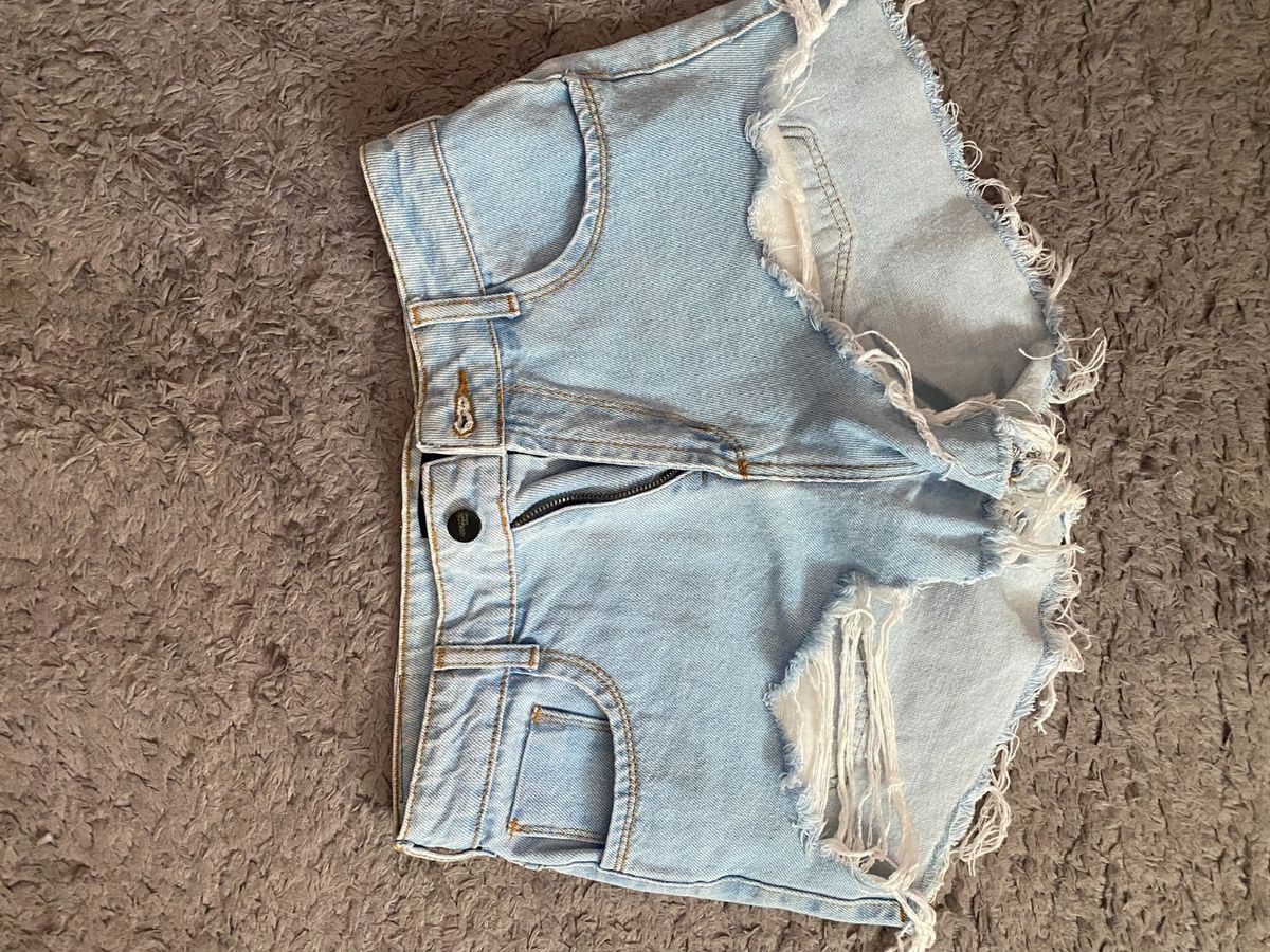 Product Item: Jardineira jeans hot sale short curto desfiado