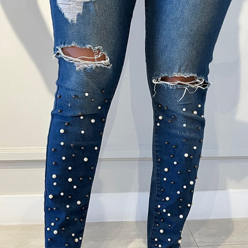 Product Item: Customizar jeans hot sale com perola