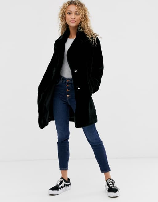 Brave soul tasmin maxi length hot sale faux fur coat