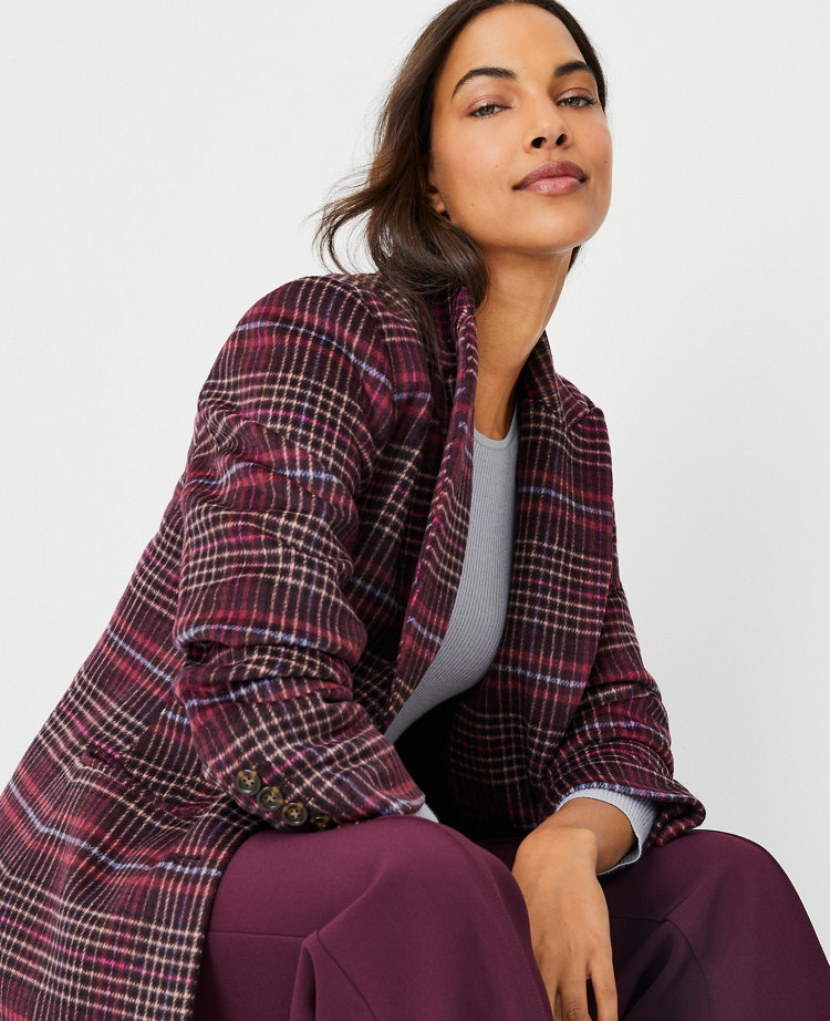 Plaid wool hot sale blend coat