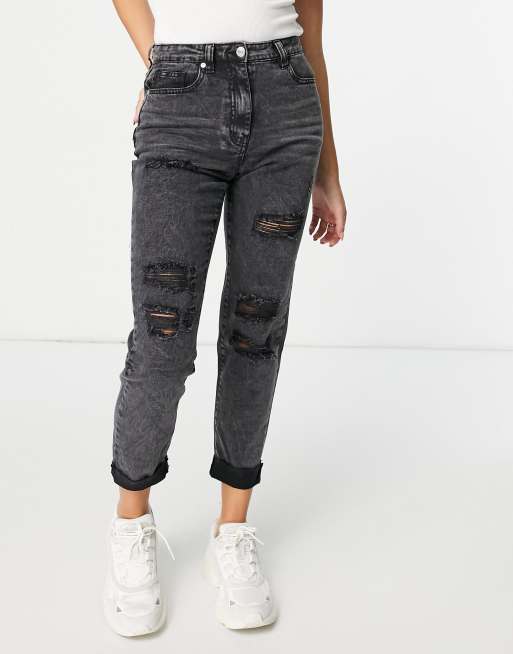 Washed black hot sale ripped mom jeans