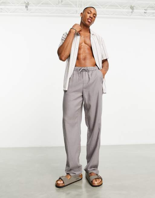 Mens grey hot sale linen trousers