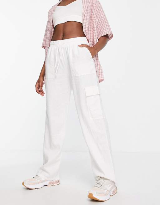 White wide hot sale leg cargo trousers