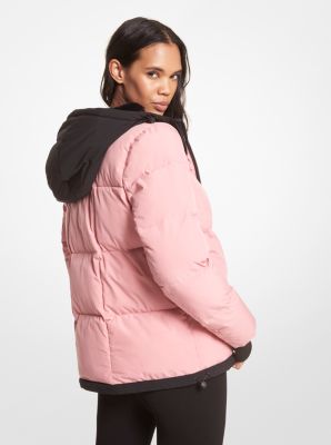 Pink puffer jacket with faux hot sale fur trim