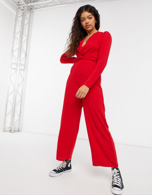 Long hot sale red jumpsuit