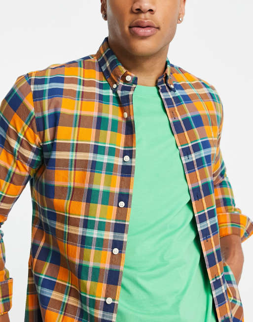 Orange and hot sale blue check shirt