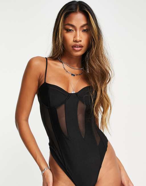 Black hot sale corset bodysuit