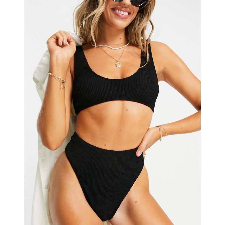 Black crinkle elasticated hot sale high waisted bottom