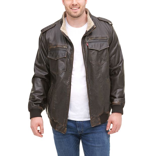 Men's vintage deer faux hot sale leather sherpa lined aviator bomber