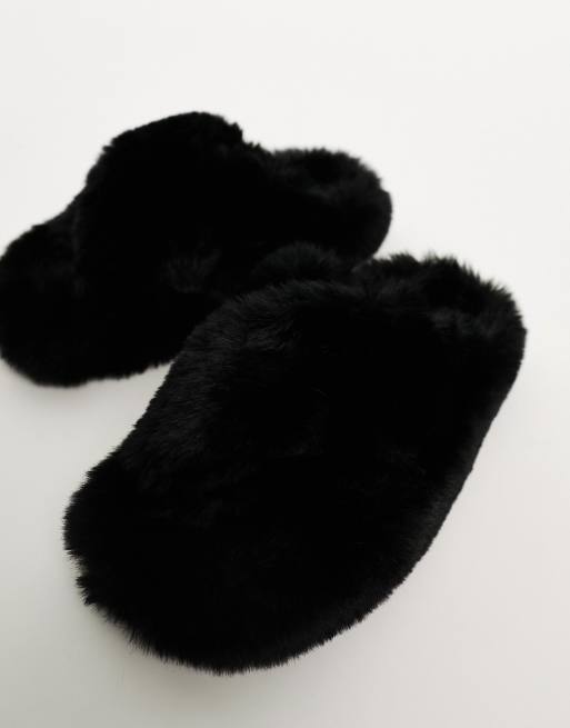 Cross strap hot sale fur slippers