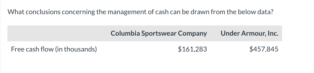Under armour hot sale free cash flow